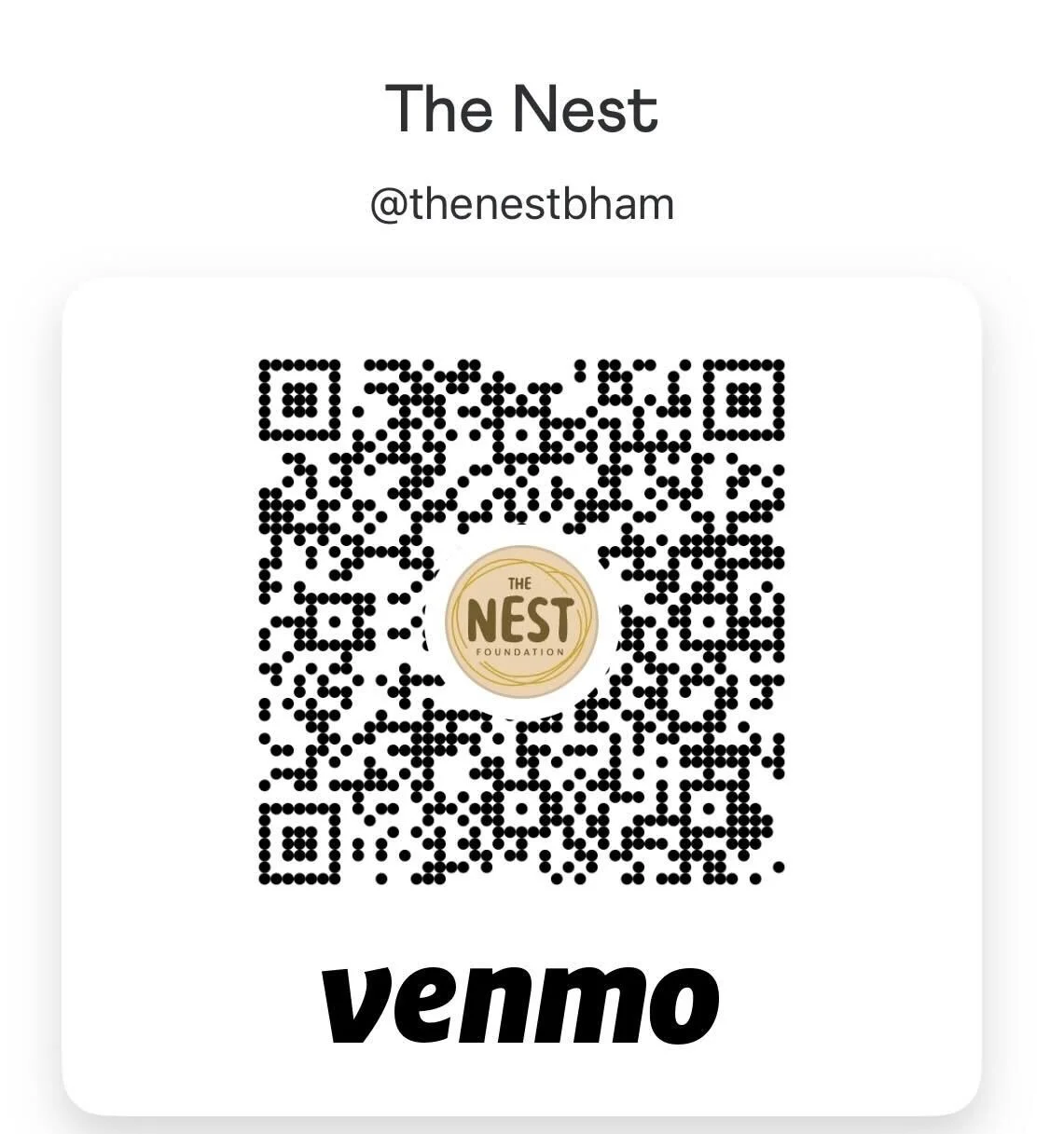The Nest Foundation is a 501c3 nonprofit organization and can accept monetary and in-kind donations from individuals, companies, and grant-giving institutions. Please reach out via email (info@nestalabama.org) if you are interested in donating via check, or you can donate digitally via PayPal or Venmo to @TheNestBham at any time.